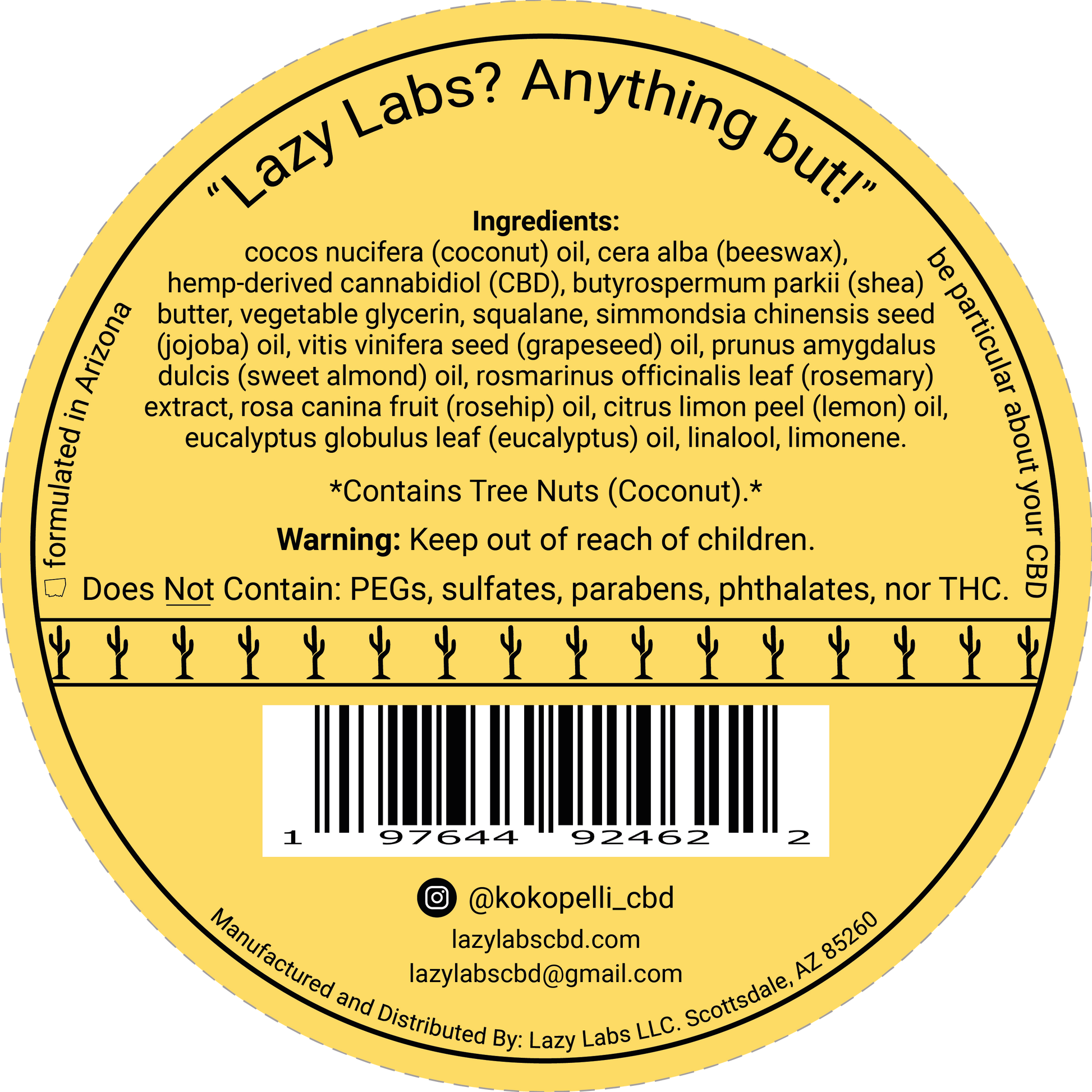 Unlock the secrets of natural healing with kokopelli CBD 6000mg Moisturizing Salve by Lazy Labs. Immerse yourself in the curated fusion of coconut oil, white beeswax, African shea butter, and a meticulous selection of nutrient-rich botanical extracts. This scientifically formulated salve, enriched with 6000mg of hemp-derived crystalline CBD isolate, delivers topical relief and indulgence. Experience the synergy of nature and science as kokopelli redefines skincare, offering a sophisticated approach to wellness that goes beyond the rest. Be particular about your CBD.